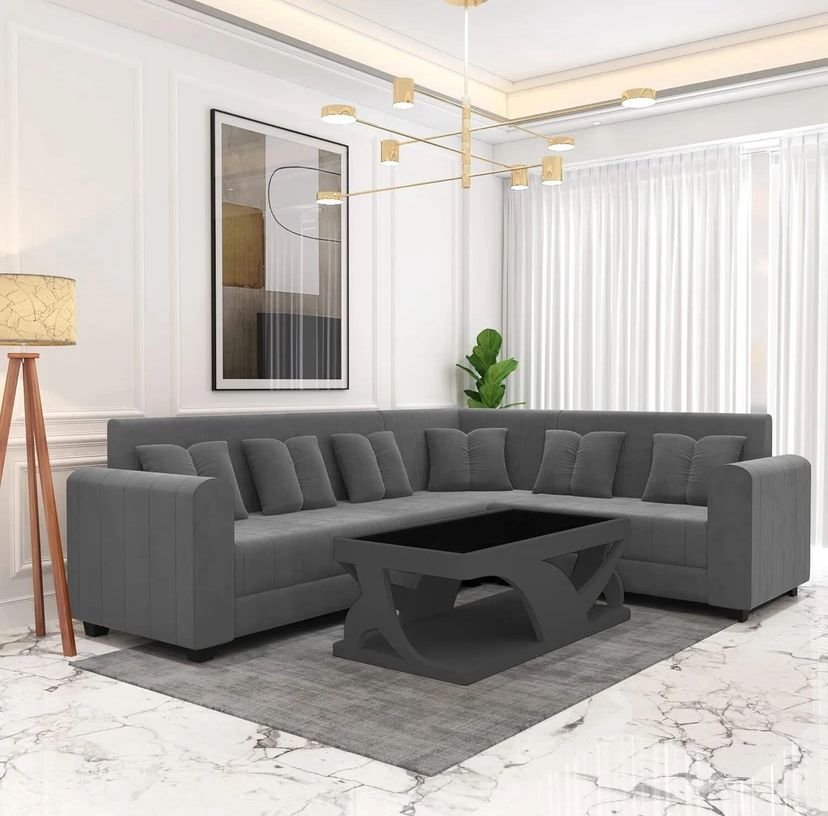 Premium Quality L Shape Sofa for Living Room Velvet Fabric 6 Seater Sofa